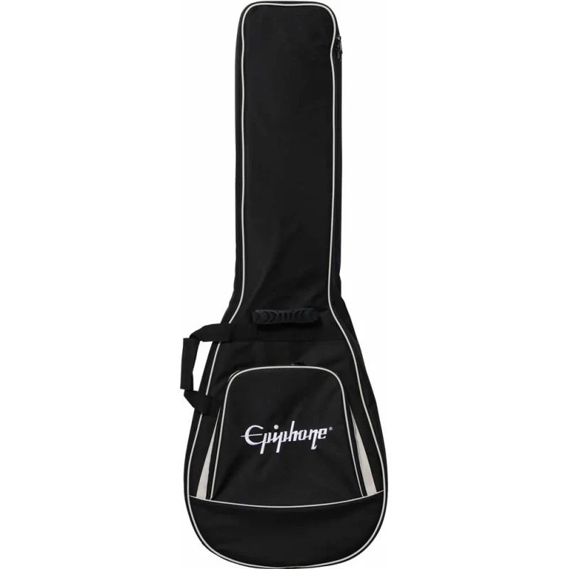 Côté électronique, on retrouve un unique micro Epiphone Bass Humbucker en position centrale, couplé à des réglages de volume et de tonalité, ainsi qu’un mini switch SPDT permettant le coil split pour une plus grande variété sonore. L’accastillage nickelé comprend un chevalet Grabber à 4 cordes avec capot, des mécaniques de type clover, un sillet en os et un pickguard noir.