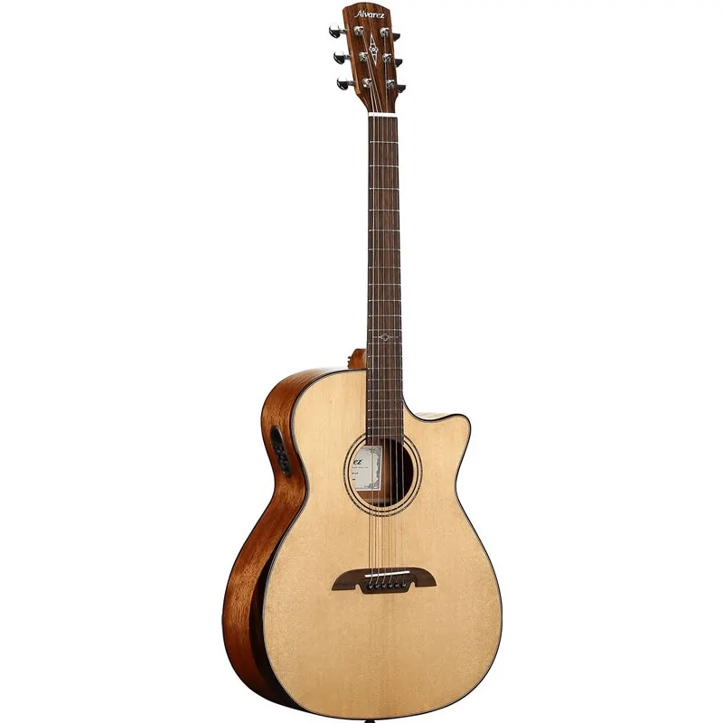 La Alvarez AG60 CE Armrest Artist est une guitare Grand Auditorium dotée d’une table en épicéa Sitka massif A+, d’un dos et d’éclisses en acajou, et d’un repose-bras en palissandre pour plus de confort. Elle intègre un barrage FS6, un chevalet en laurier indien, des sillets en os, des mécaniques chromées et des cordes D’Addario XTAPB1273. Son préampli LR Baggs StagePro Bronze assure une amplification naturelle. Finition naturel brillant ou semi-brillant.